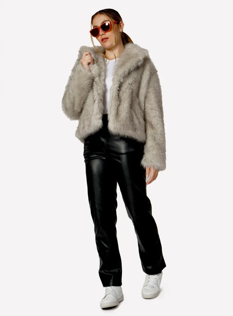 Dale un toque de glamour a tu outfit con el Abrigo TokIo, confeccionado en suave pelo sintético tipo peluche que aporta elegancia y calidez. Su diseño corto y moderno lo hace ideal para combinar con jeans, leggings o pantalones de piel.