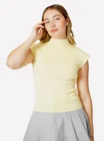 Top negro de tejido suave con cuello mock (medio alto) y diseño sin mangas. Destaca por sus pequeños aplicaciones de lazos blancos distribuidos al frente, creando un contraste elegante y divertido. Una prenda versátil y cómoda.