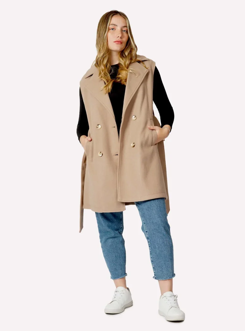 Chaleco largo para dama tela tipo lana, con botones al frente y cinta ajustable en la cintura, doble capa en espalda y bolsos a los costados Colores y Tallas que contiene la caja Caja completa 24 piezas: