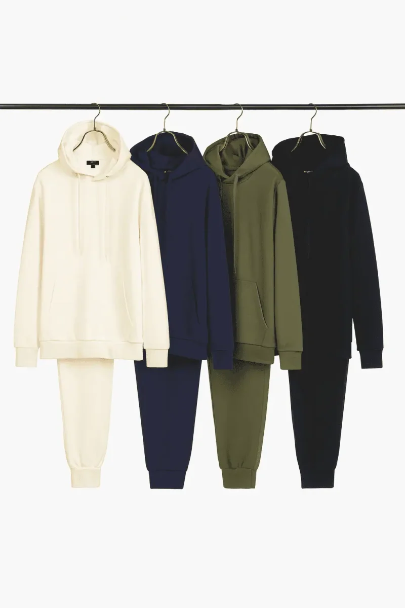 Set de pants para caballero con sudadera tipo hoodie. Cuenta con bolsa frontal estilo canguro, cordones ajustables en la capucha y resorte en cintura y puños para un mejor ajuste. El pants incluye pretina elástica con cordón y bolsillos laterales funcionales. Su tela suave con lycra ofrece comodidad y libertad de movimiento, ideal para uso diario o actividades casuales.