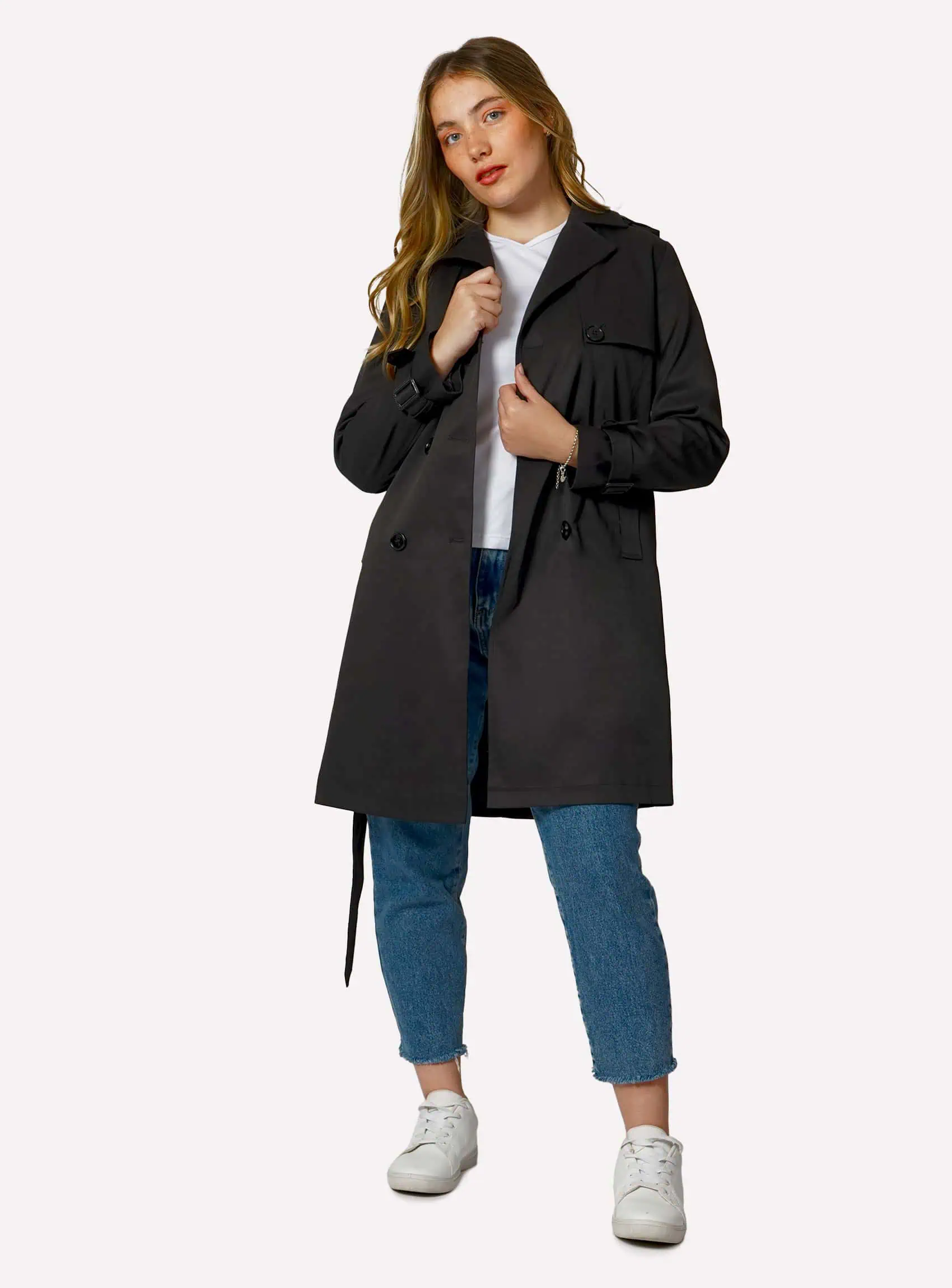 Trench coat clásico con cinturón Abrigo ligero y elegante con corte recto y doble botonadura. Incluye cinturón ajustable y acabados de calidad que realzan la prenda. Colores y Tallas que contiene la caja Caja completa 24 piezas: