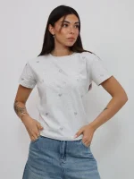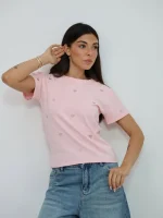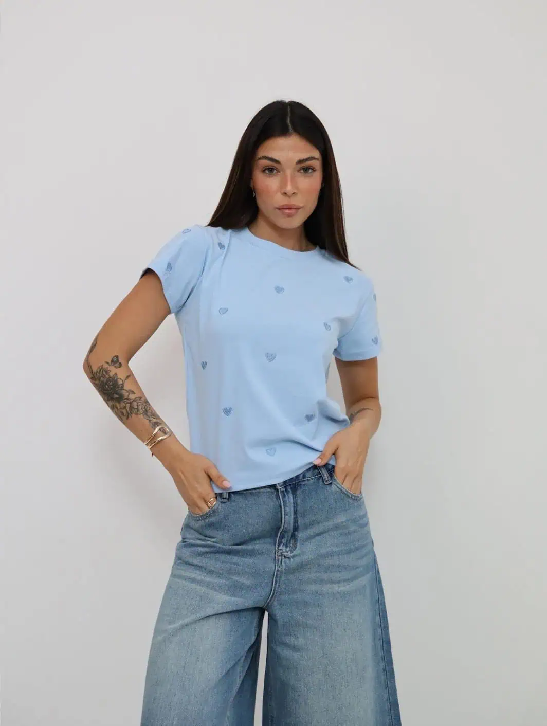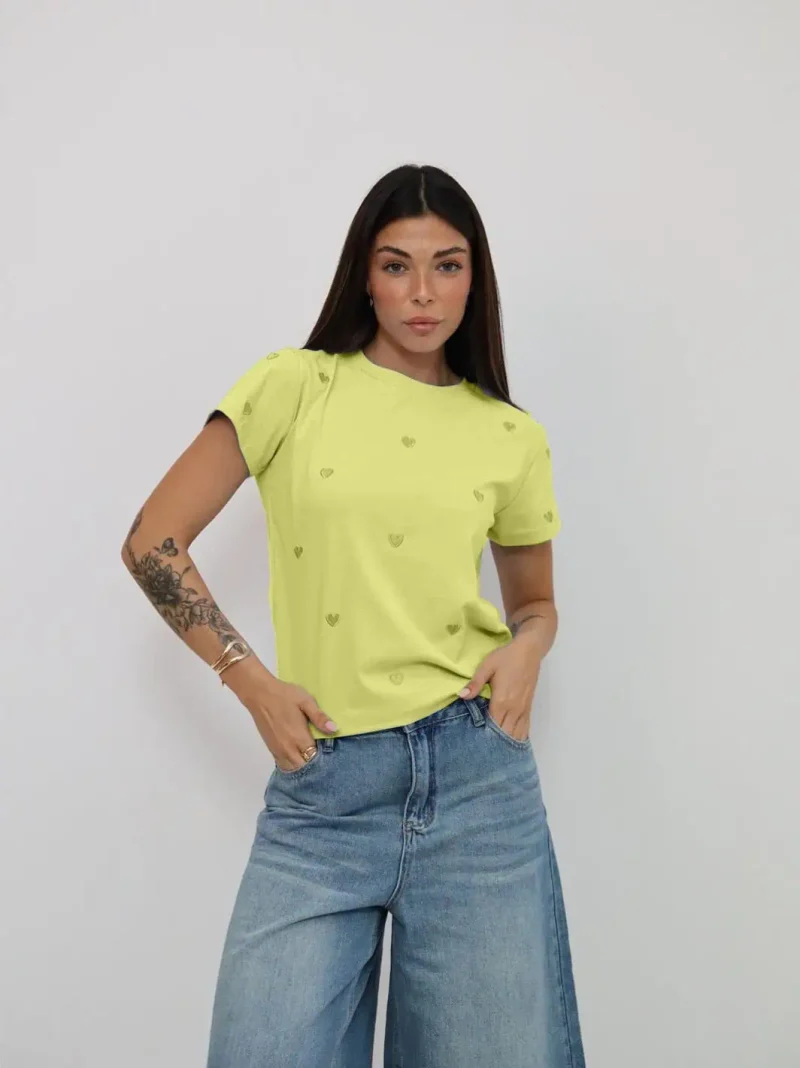 Añade un toque romántico a tu día a día con esta blusa básica. Su diseño adornado con delicados detalles de corazones la convierte en la pieza perfecta para lograr un estilo casual, coqueto y súper versátil.