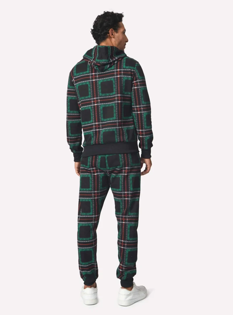 Set de pants para caballero con diseño a cuadros, confeccionado en tela suave y resistente, ideal para dar un toque moderno y diferente al look casual. Incluye hoodie con ajuste de gorro y bolsa tipo canguro al frente, además de pantalón con cintura elástica y jareta para mejor ajuste. El patrón a cuadros lo hace destacar entre los básicos, ofreciendo un estilo urbano y actual.